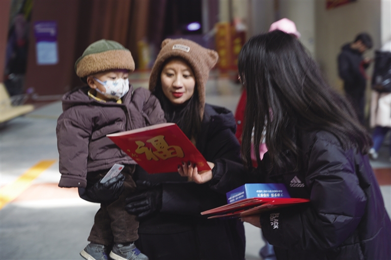 1月14日15時許,拉薩火車站候車大廳人頭攢動,熱鬧非凡。回鄉(xiang) 的人們(men) 臉上都洋溢著幸福的笑容,期待著歸家的旅途。“你好,送你們(men) 一副對聯,祝你們(men) 新春快樂(le) 。”候車廳內(nei) ,自治區總工會(hui) 的工作人員將一副副喜慶的對聯送給踏進火車站的人們(men) ,為(wei) 他們(men) 送上新春的祝福和溫暖。