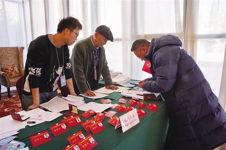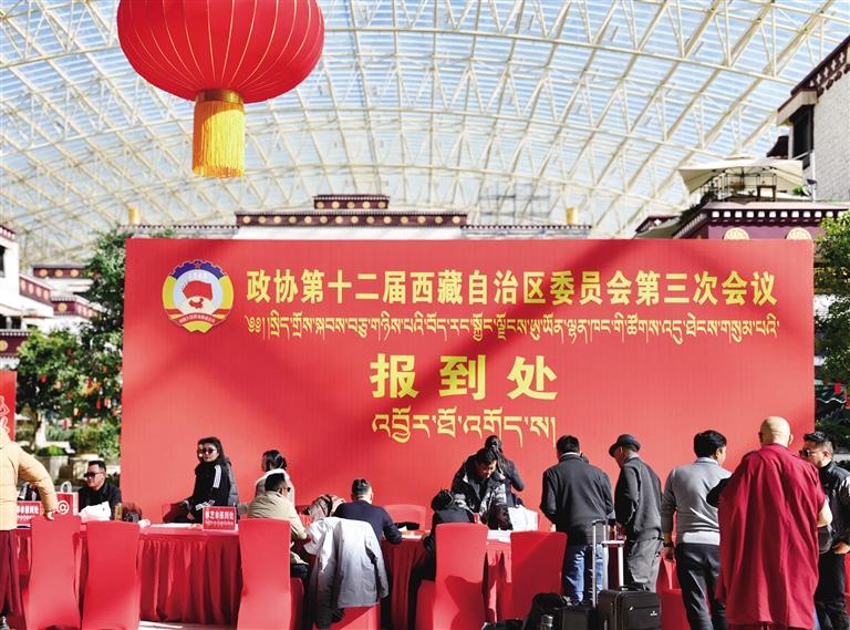 1月16日,參加自治區政協十二屆三次會(hui) 議的委員向大會(hui) 報到。記者 貢曲羅傑 攝