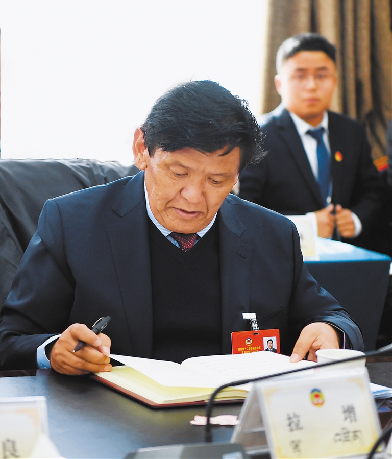 在分組討論時,結合自身調研成果和工作實際,就全區生態環境保護工作提出了意見和建議。拉增告訴記者,在過去的一年裏,他堅持把本職工作和政協委員職能聯係起來,邊學習(xi) 、邊思考、邊指導實際工作。期間,積極與(yu) 兄弟省市同行人員溝通,學習(xi) 借鑒區外森林草原防滅火、荒漠化綜合治理等生態保護方麵的先進經驗和做法。“作為(wei) 一名政協委員,我積極履職盡責,結合工作實際,圍繞林草資源保護等問題認真開展調查走訪,傾(qing) 聽民意,撰寫(xie) 了‘讓綠色擁抱大地 讓火災遠離森林’等調研材料。先後赴昌都市、那曲市參加了自治區政協組織開展的產(chan) 業(ye) 發展調研工作。”