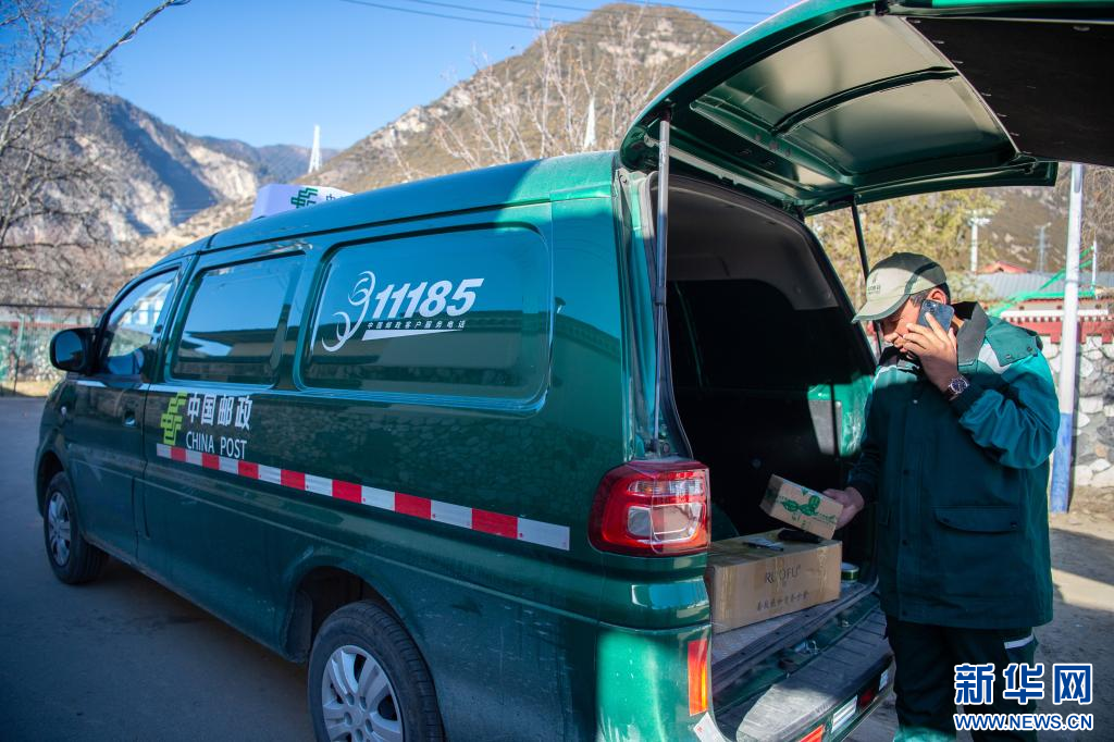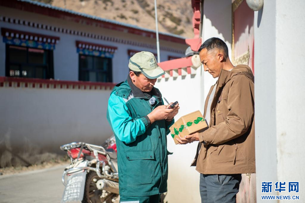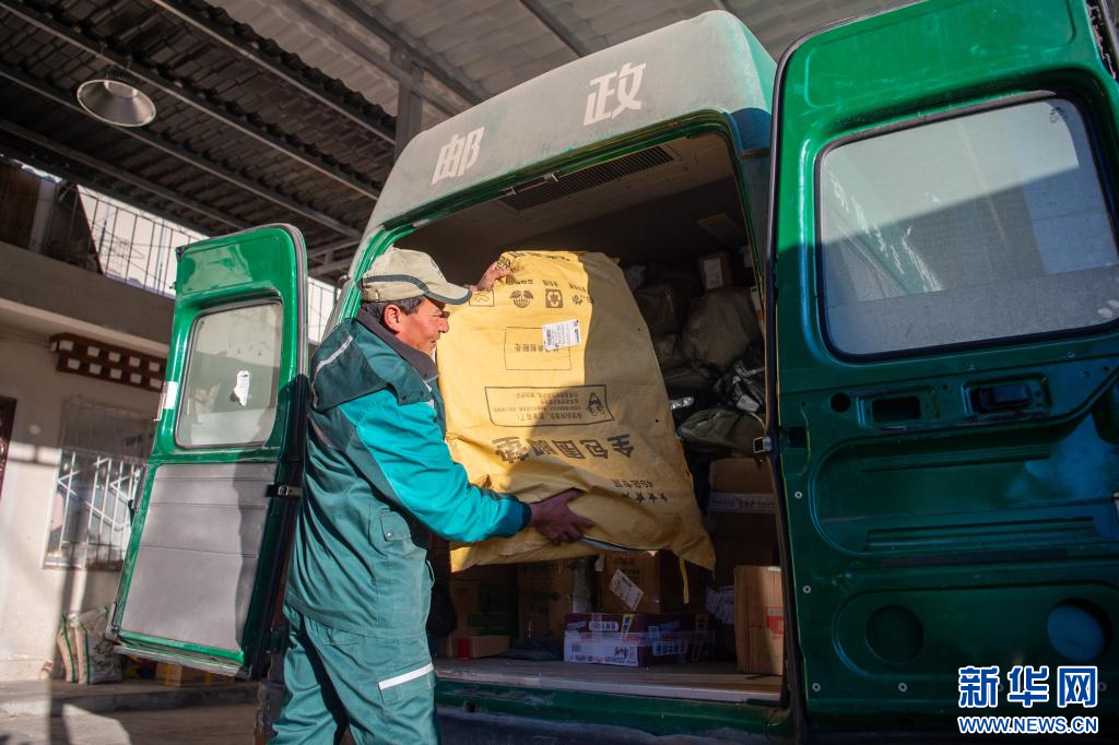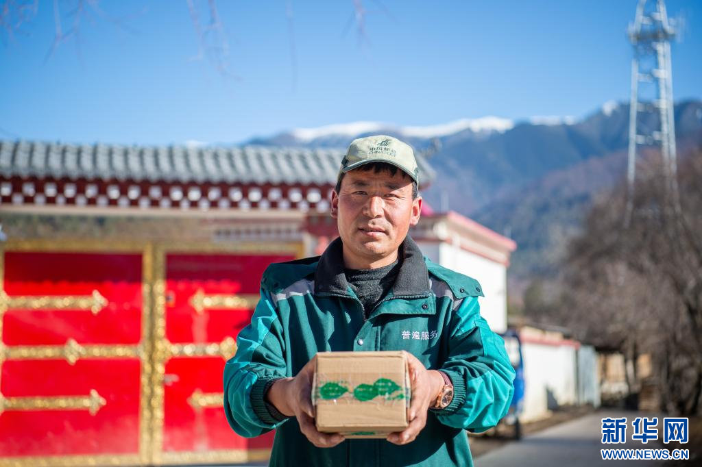 1月19日,郵遞員索朗次仁在送快遞。新華網 旦增努布 攝