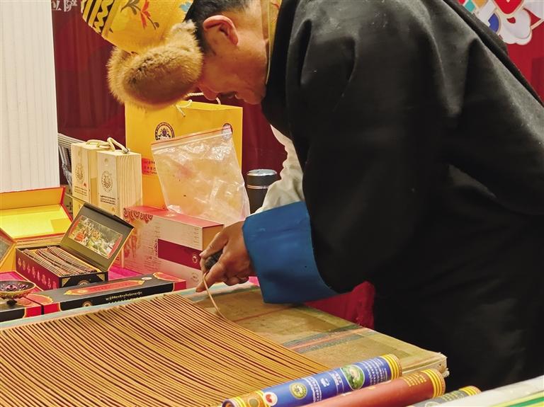 展銷活動現場,一股淡雅香氣彌漫開來,藏香展位上,線香靜靜燃燒。拉薩市級非物質文化遺產(chan) 代表性傳(chuan) 承人加措正在製作藏香,吸引不少人駐足觀看。市民鄭先生說:“以前隻見過藏香成品,第一次看製作過程,很驚喜。春節申遺成功後,非遺受關(guan) 注更多,希望西藏非遺好物能被更多人了解!”