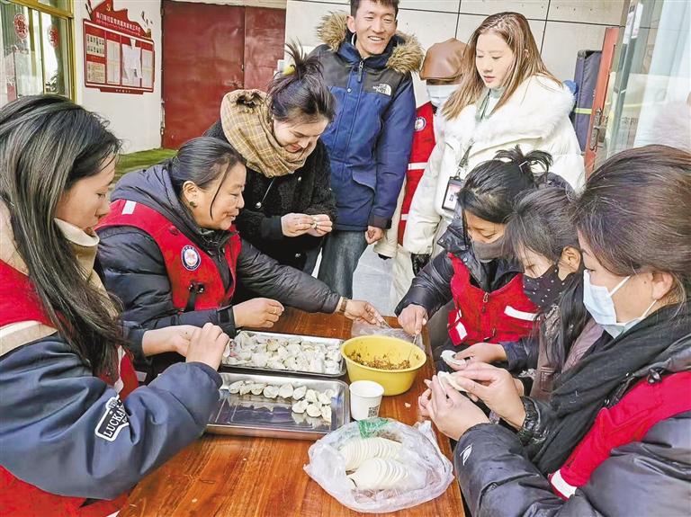 上圖:1月27日,拉薩市城關(guan) 區策門林社區工作人員與(yu) 居民一起包餃子。