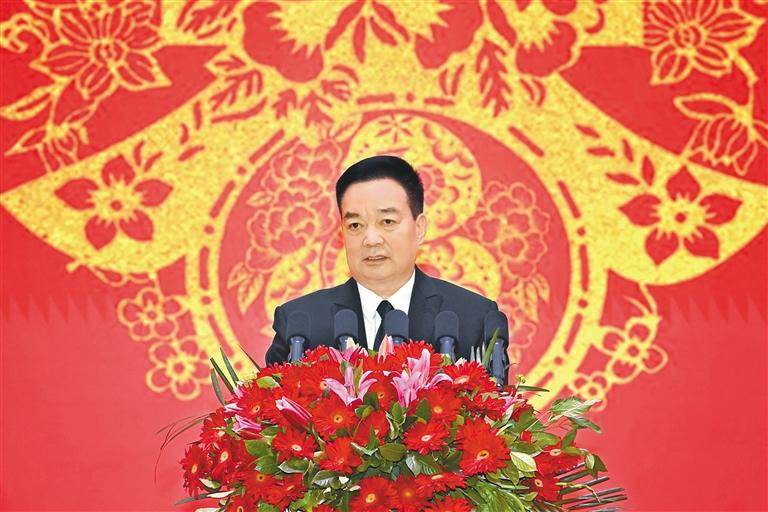 王君正在致辭中說,2024年是西藏經濟社會(hui) 發展曆程中不平凡的一年。自治區黨(dang) 委團結帶領全區各族幹部群眾(zhong) ,深入貫徹落實習(xi) 近平總書(shu) 記關(guan) 於(yu) 西藏工作的重要指示和新時代黨(dang) 的治藏方略,緊緊圍繞“四件大事”落實,努力推動長治久安和高質量發展取得新成效。牢固樹立總體(ti) 國家安全觀,堅持警鍾長鳴、警惕常在,把維穩工作做在日常、做到經常、落實在基層,加快推進依法治藏,建設更高水平的法治西藏,確保社會(hui) 大局持續和諧穩定,長治久安的基礎更加牢固。完整準確全麵貫徹新發展理念,落實“三個(ge) 賦予一個(ge) 有利於(yu) ”總要求,傳(chuan) 統產(chan) 業(ye) 提質增效,新興(xing) 產(chan) 業(ye) 加快發展,營商環境持續優(you) 化,努力推動經濟社會(hui) 高質量發展,確保經濟發展當前有活力、未來有潛力。(下轉第二版)(緊接第一版) 堅持以人民為(wei) 中心的發展思想,持續改善各族群眾(zhong) 的生產(chan) 生活條件,改進工作方式方法,采取針對性措施解決(jue) 好群眾(zhong) 關(guan) 心的醫療、教育、就業(ye) 等實際問題,西藏班招生規模不斷擴大,全區城鄉(xiang) 麵貌發生深刻變化,各族群眾(zhong) 的獲得感幸福感安全感持續增強。持之以恒推進全麵從(cong) 嚴(yan) 治黨(dang) ,堅決(jue) 貫徹黨(dang) 中央關(guan) 於(yu) 全麵從(cong) 嚴(yan) 治黨(dang) 的戰略部署,牢固樹立憑能力用幹部、以實績論英雄的鮮明用人導向,努力建設一支忠誠幹淨擔當的幹部隊伍,黨(dang) 的戰鬥力、凝聚力、領導力、號召力不斷增強。日喀則市定日縣地震發生後,自治區黨(dang) 委認真貫徹落實習(xi) 近平總書(shu) 記重要指示精神和中共中央政治局常務委員會(hui) 會(hui) 議精神,按照黨(dang) 中央、國務院決(jue) 策部署,全區黨(dang) 政軍(jun) 警民齊心協力、協調聯動,廣大黨(dang) 員幹部勇於(yu) 擔當、衝(chong) 鋒在前,科學救治受傷(shang) 群眾(zhong) ,全力搶修基礎設施,妥善安置受災群眾(zhong) ,確保了人民群眾(zhong) 生命財產(chan) 安全,抗震救災工作取得階段性勝利。西藏各項事業(ye) 的發展進步,是以習(xi) 近平同誌為(wei) 核心的黨(dang) 中央英明領導的結果,是習(xi) 近平新時代中國特色社會(hui) 主義(yi) 思想科學指引的結果,是全區各族人民努力奮鬥的結果。