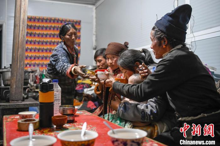 “今年我們(men) 家的‘古突’(一種藏式麵食)裏有麵疙瘩、牛肉、蕨麻、奶渣、米飯,很香、很好吃。”1月28日是農(nong) 曆春節除夕,恰逢日喀則農(nong) 事新年“古突夜”,在西藏定日縣曲洛鄉(xiang) 措昂村安置板房內(nei) ,20歲的央宗喝完一碗母親(qin) 煮的“古突”後對中新社記者說。