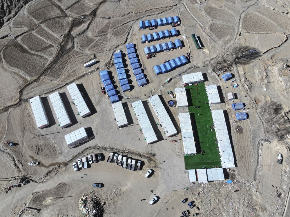 1月28日,定日縣長所鄉(xiang) 古榮村安置點,所有受災群眾(zhong) 已搬入板房(無人機照片)。新華社記者 洛卓嘉措 攝