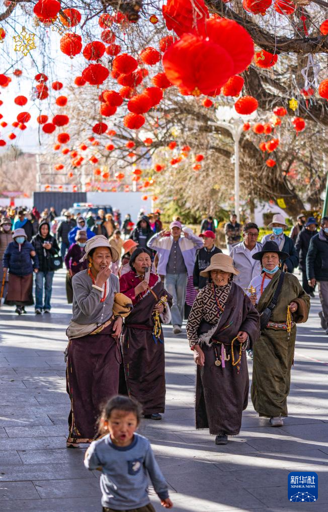 新春佳節期間,拉薩市在城區布置了許多春節裝飾,並開展豐(feng) 富多彩的文娛活動。當地群眾(zhong) 和遊客漫步“日光之城”,感受濃濃年味。