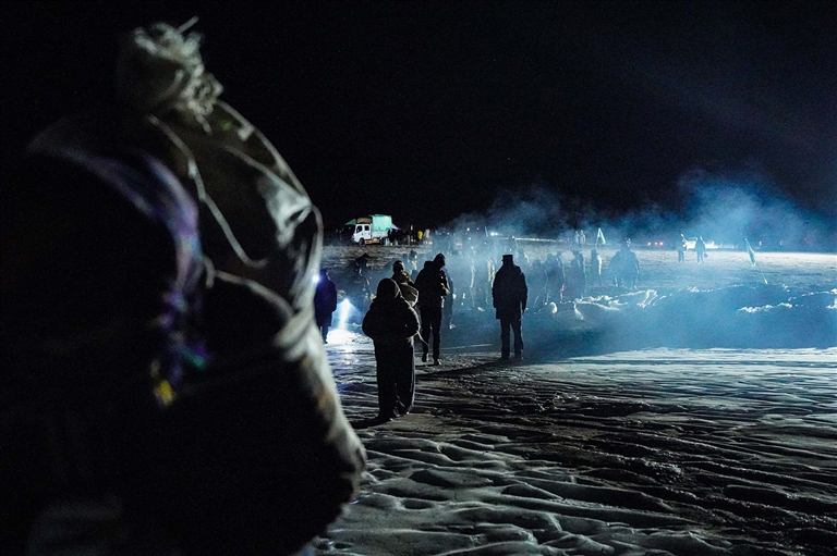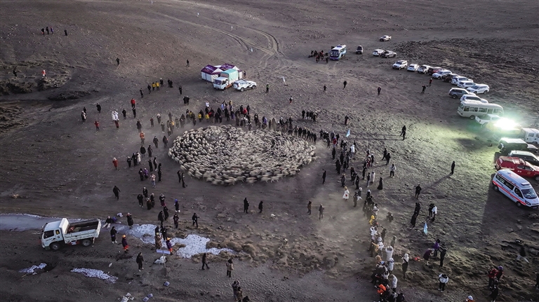 這場趕羊活動,是一場人與(yu) 自然的溫柔邂逅。牧羊人與(yu) 羊群相互陪伴,冰湖與(yu) 雪山相互映襯,星光與(yu) 日出交替登場,所有元素在這一刻完美交融,共同繪就了推瓦村冬季裏最令人難忘的風景。冰湖上的每一步,都飽含著對自然的敬畏與(yu) 依賴;每一道光,都是對生命的深情禮讚。