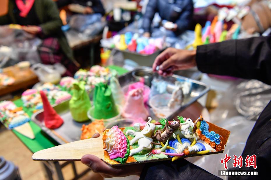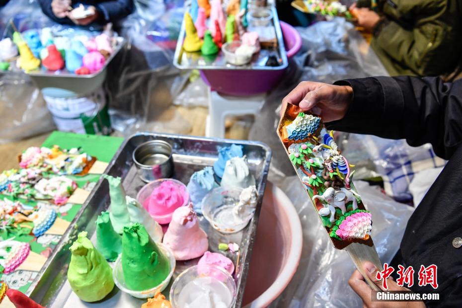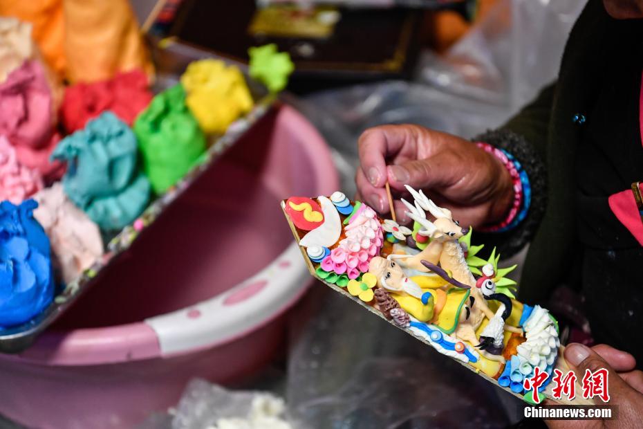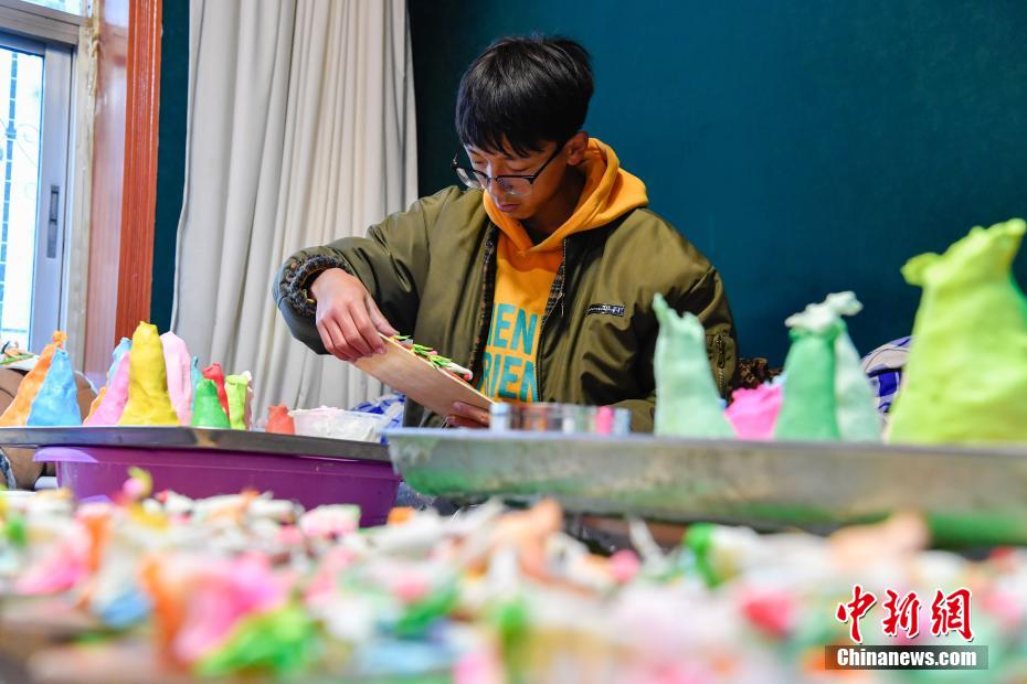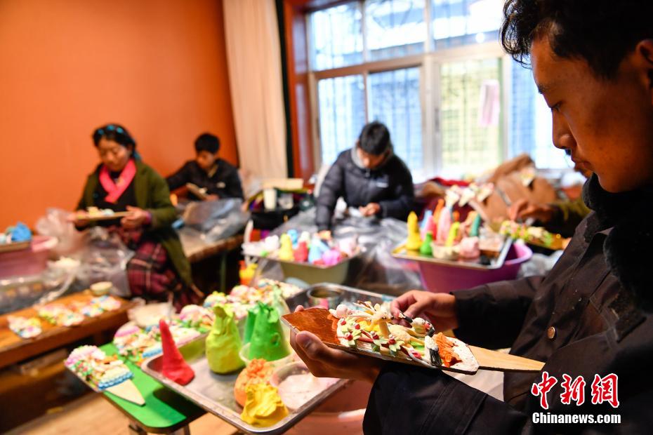 2月15日,手工藝人在拉薩製作酥油花。隨著藏曆新年臨(lin) 近,酥油花在拉薩年貨市場上熱銷。酥油花在藏語中稱為(wei) “孜紮”,是藏族民眾(zhong) 家庭中必備的年貨之一。