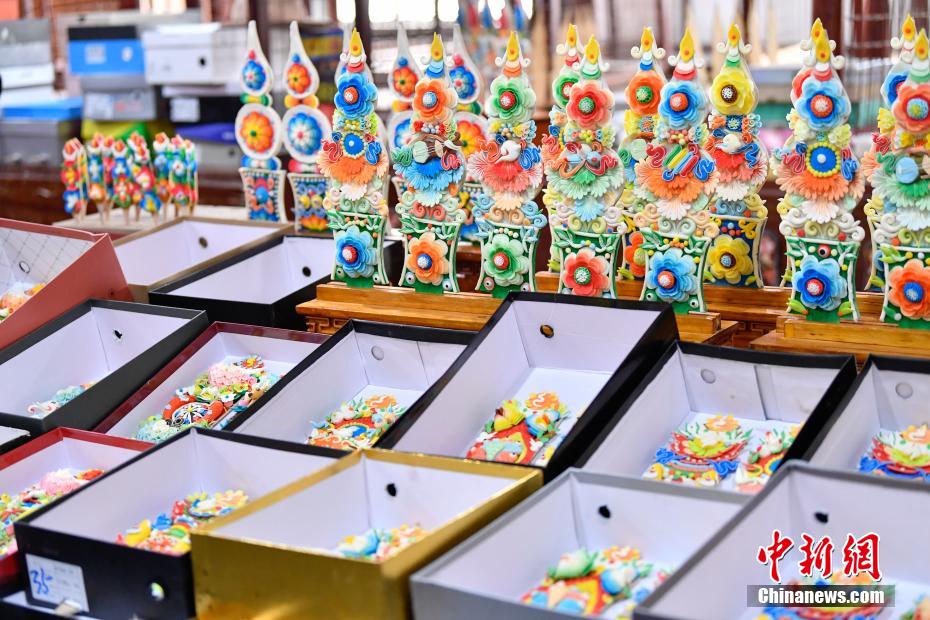 2月15日,手工藝人製作好的酥油花在拉薩八廓商場出售。隨著藏曆新年臨(lin) 近,酥油花在拉薩年貨市場上熱銷。酥油花在藏語中稱為(wei) “孜紮”,是藏族民眾(zhong) 家庭中必備的年貨之一。