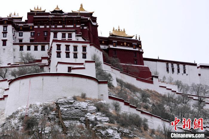 2月19日,西藏拉薩經過持續降雪,城市四周白雪皚皚。雪山、建築相映成景、風光秀麗(li) 。圖為(wei) 2月19日,雪後布達拉宮。中新社記者 李林 攝