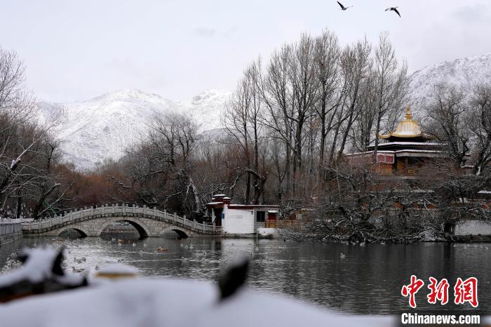 2月19日,西藏拉薩經過持續降雪,城市四周白雪皚皚。雪山、建築相映成景、風光秀麗(li) 。圖為(wei) 2月19日,雪後宗角祿康公園。中新社記者 李林 攝