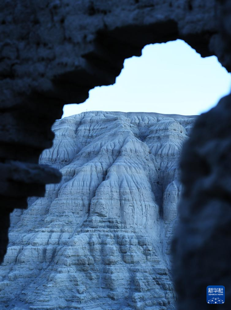 這是透過古格王國遺址殘垣拍攝的土林(1月30日攝)。新華社記者 關(guan) 明輝 攝