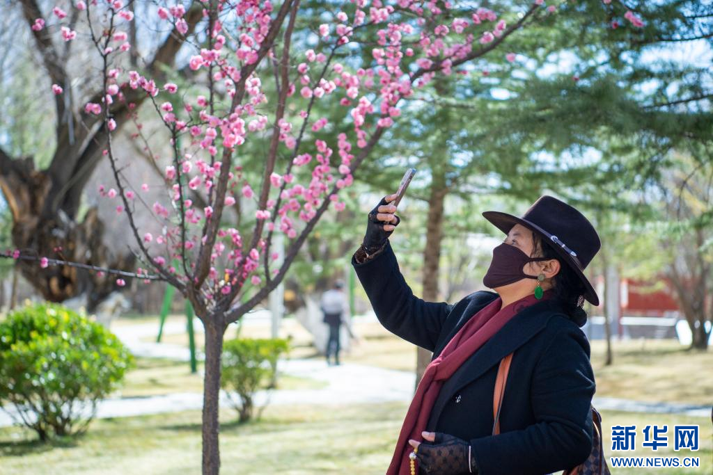 3月15日,群眾(zhong) 在宗角祿康公園賞花、拍照。新華網 旦增努布 攝