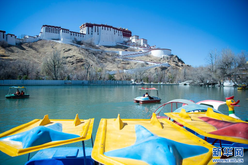 3月15日,位於(yu) 布達拉宮腳下的宗角祿康公園內(nei) ,遊客在乘船遊玩。新華網 旦增努布 攝