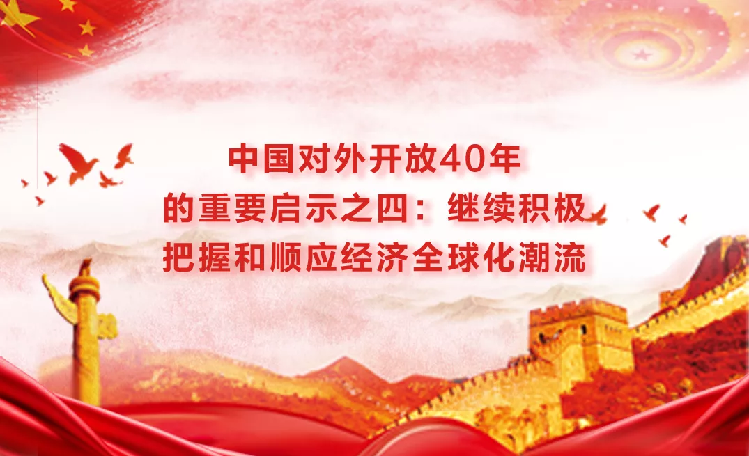 【編者按】經濟全球化是不可逆轉的曆史大勢,為(wei) 世界經濟發展提供了強勁動力。改革開放40年,中國把握和順應經濟全球化曆史大勢,在開放中探索,在開放中奮進,逐步實現從(cong) “趕上時代”到“引領時代”的偉(wei) 大跨越。在慶祝改革開放40周年之際,為(wei) 了深刻總結中國對外開放40年重要啟示,中國理論網精心推出《繼續積極把握和順應經濟全球化潮流》一文,以饗讀者。