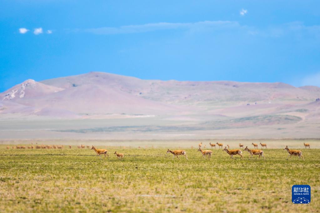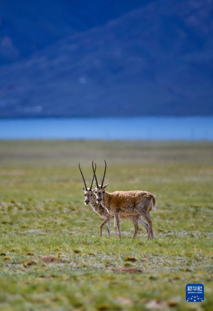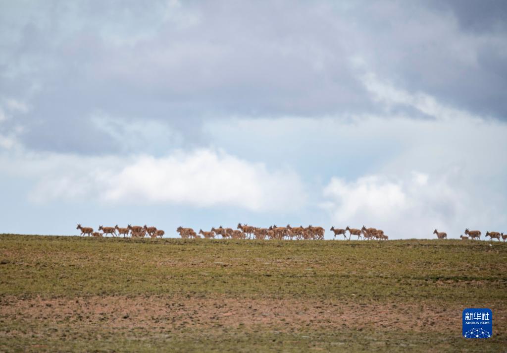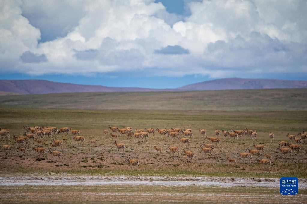 這是在羌塘國家級自然保護區內(nei) 拍攝的藏羚羊(7月11日攝)。新華社記者 晉美多吉 攝
