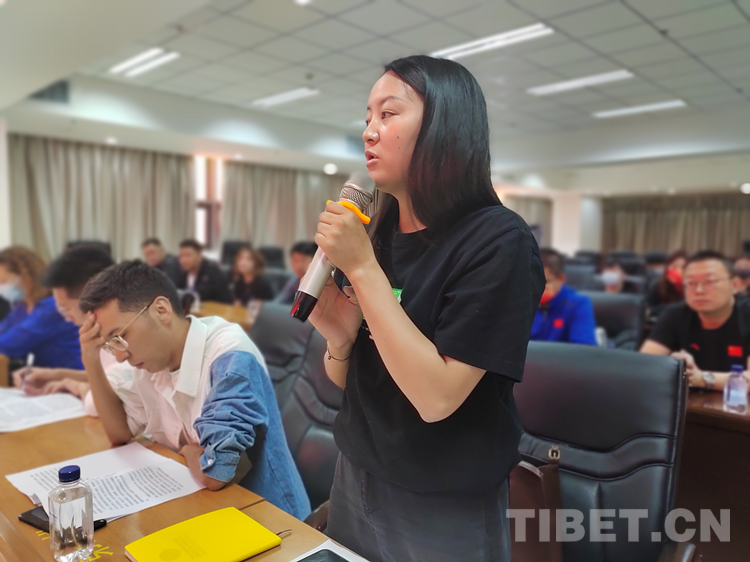 圖為(wei) 2022環拉薩城自行車大賽新聞發布會(hui) 現場西藏商報記者在提問 攝影:拉姆