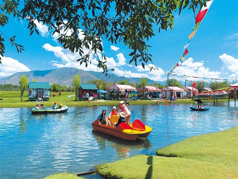 時下,正是“過林卡”的最好時節,為(wei) 了吸引客源、招攬生意,林卡經營者不斷完善基礎設施,搭建漂亮的帳篷,提供特色服務,滿足市民遊客戲水、劃船、健身運動和特色美食等需求。