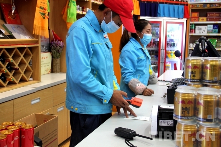 圖為(wei) 魯朗加油站工作人員在便利店內(nei) 收費 攝影:德吉卓嘎
