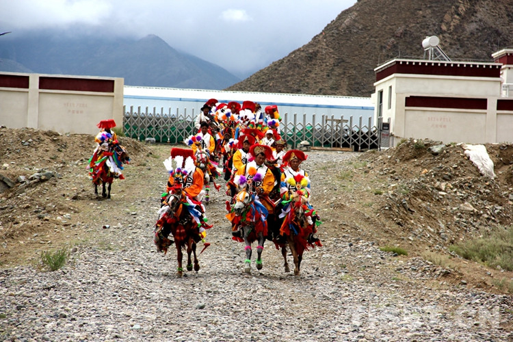 馬隊經過農(nong) 田,帶去青稞黃熟的信號;繞過村舍,帶來豐(feng) 收在望的喜悅;來到賽馬場,帶給村民們(men) 陣陣歡笑。一批批歡跳奔跑的“寶貝”馬,把馬背上騎手的喜悅揚上了天,而留在家中的村民也早早來到該村賽馬場,在場地邊上階梯觀眾(zhong) 席等候馬隊到來,以便納福迎瑞。