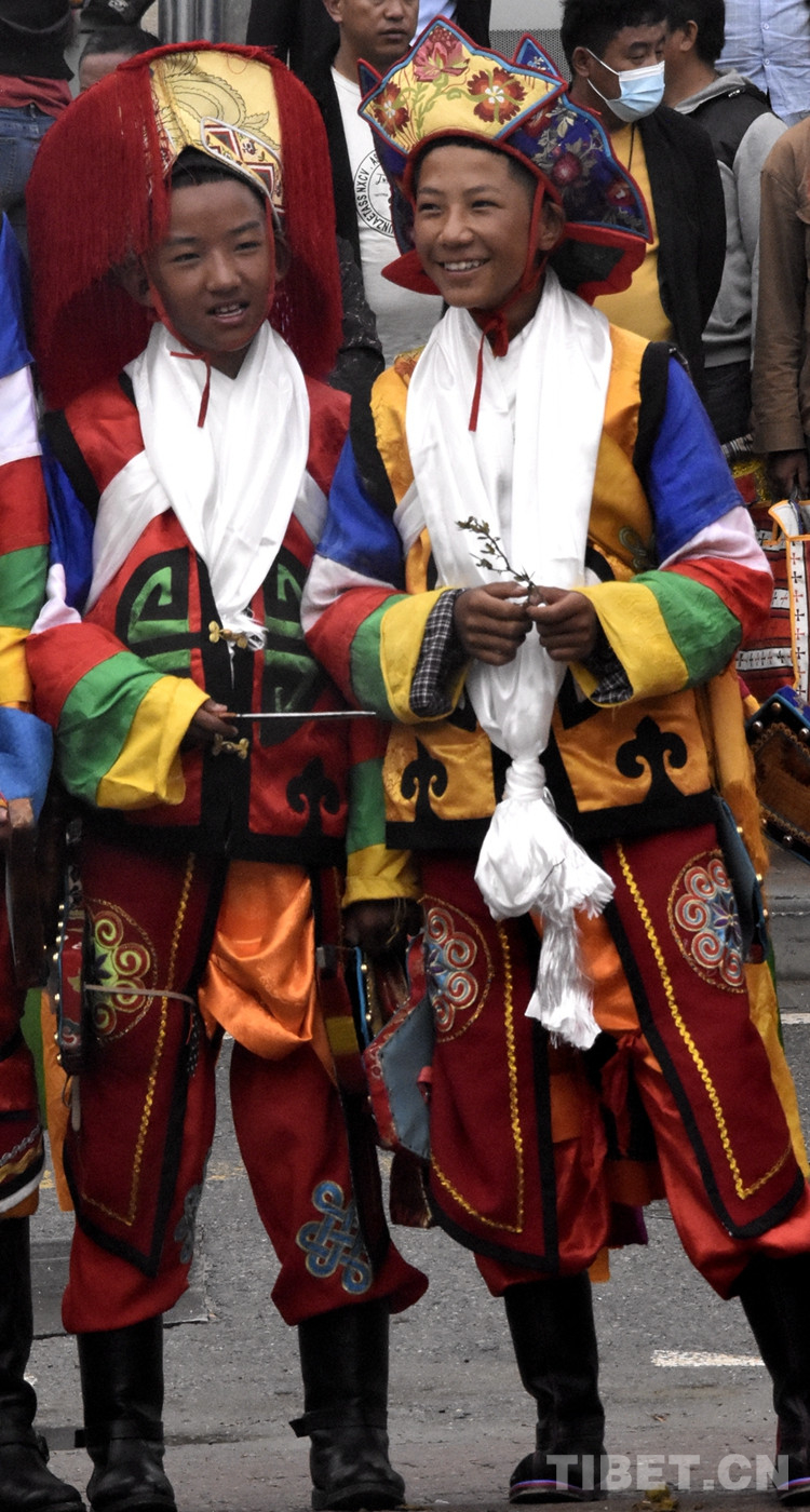 8月2日,西藏自治區拉薩市堆龍德慶區柳梧鄉(xiang) 桑達村迎來了一年一度的“望果節”,家家戶戶都起個(ge) 大早,給家裏的煨桑爐添上樹枝,撒上青稞麵粉,再抹上幾點酥油,混合著鬆枝、酥油香味的桑煙便在村裏彌漫開來。上午10時,村民們(men) 帶著青稞酒、煨桑用的柏枝,陸續走出家門來到村裏的“拉康”(神殿)外,等待“望果節”儀(yi) 式開始,大家歡聚在“拉康”(神殿)外有說有笑。噠噠馬蹄聲傳(chuan) 來,身著盛裝的騎手們(men) 把披紅掛綠的“戰馬”或牽或騎地帶到儀(yi) 式現場。
