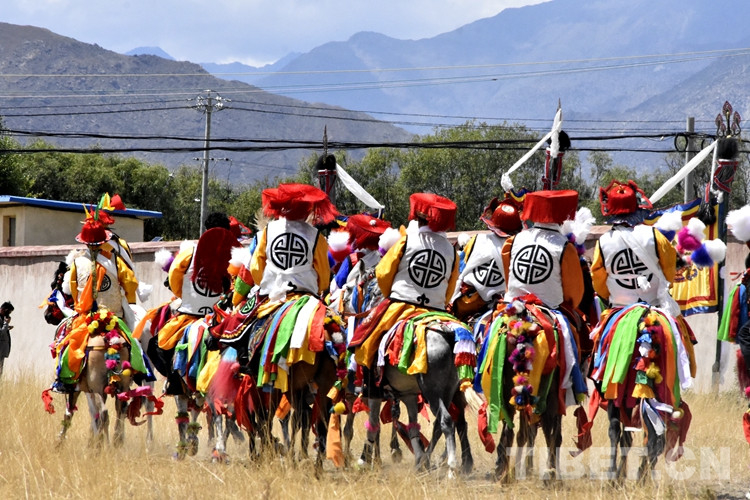 “望果節”從(cong) 遠古走來,是西藏人民敬畏自然、禮讚生命、寄托祝福的節日。“拉康”外,騎手們(men) 和村裏德高望重的老人們(men) 正在吟唱古老的民歌,祈求風調雨順、莊稼豐(feng) 收。一聲“傑傑嗦嗦,拉嗦囉”後,糌粑粉被高高拋撒,騎手們(men) 即將出發。