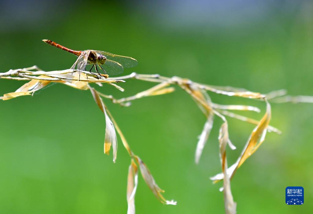 這是在拉薩市一家單位的院內(nei) 拍攝的蜻蜓(8月15日攝)。新華社記者 張汝鋒 攝