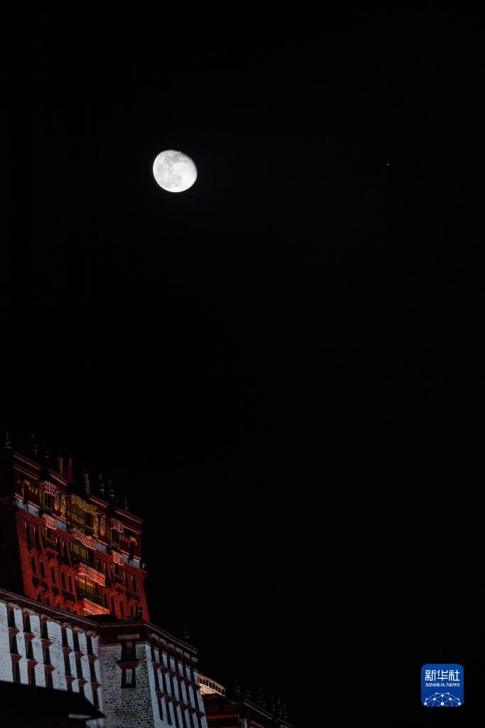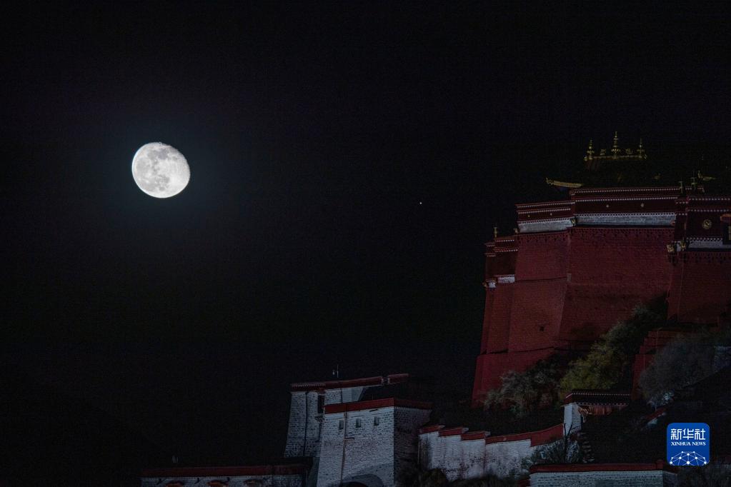 11月11日晚,一次賞心悅目的火星合月亮相天宇。這是在西藏拉薩市布達拉宮附近,記錄下的這幕“星月童話”。新華社記者 劉潁 攝