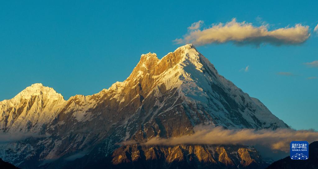 夕陽下的加拉白壘峰(11月28日攝,無人機照片)。新華社發(董誌雄 攝)