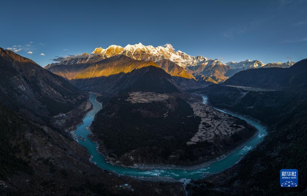 流淌在南迦巴瓦峰腳下的雅魯藏布江(11月28日攝,無人機合成照片)。新華社發(董誌雄 攝)