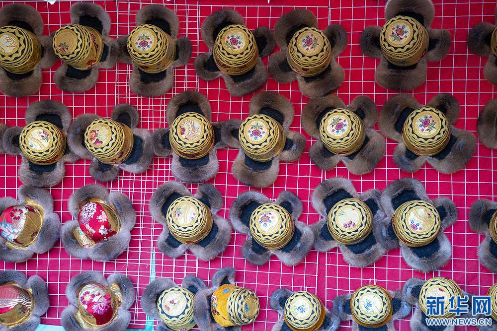 圖為(wei) 第42屆雅礱物資交流會(hui) 上展示的金絲(si) 藏帽(12月3日攝)。新華網 旦增努布 攝