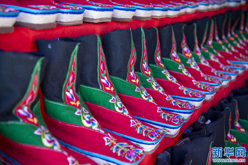圖為(wei) 第42屆雅礱物資交流會(hui) 上展示的藏靴(12月3日攝)。新華網 旦增努布 攝