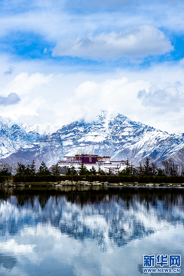 3月30日,在拉薩市南山公園拍攝的雪後布達拉宮。新華網 柑丹鴦琦攝