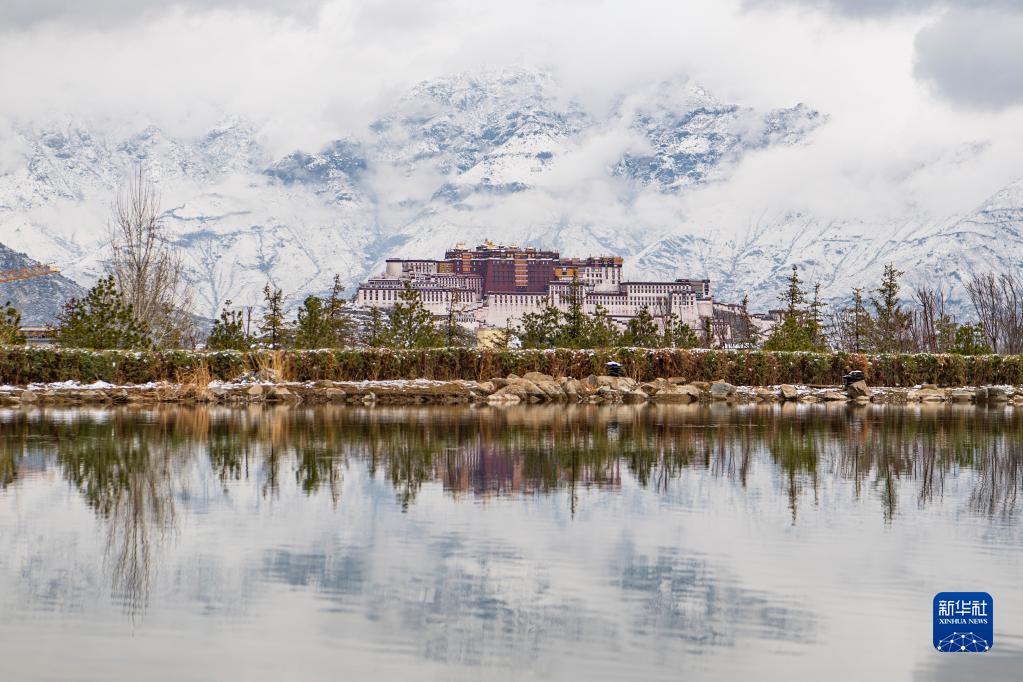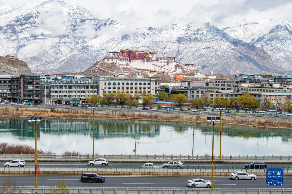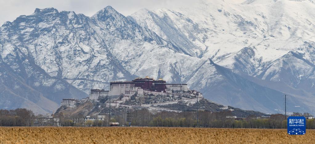 從(cong) 拉魯濕地拍攝的雪後布達拉宮(3月30日攝)。新華社記者 晉美多吉 攝