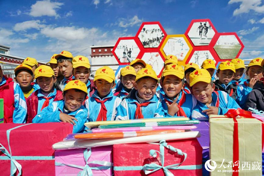 拉薩市當雄縣小學的孩子們(men) 收到愛心人士送來的禮物。人民網 李海霞攝