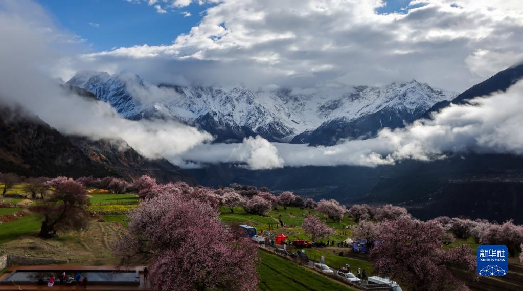 清明時節,西藏米林市派鎮索鬆村的桃花進入盛放期,吸引遊客前來觀賞、拍攝。