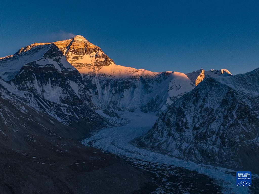 這是5月11日日落時分拍攝的珠穆朗瑪峰(無人機照片)。新華社記者 孫非 攝