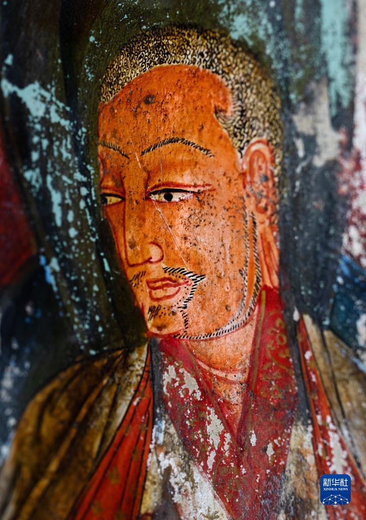 這是5月26日拍攝的皮央石窟壁畫中的人物造型。新華社記者 費茂華 攝