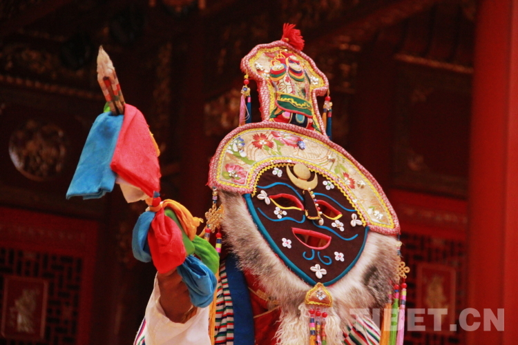 圖為(wei) 拉薩市城關(guan) 區娘熱民間藝術團演員多吉次仁表演國家級非物質文化遺產(chan) “嘎爾”攝影:劉莉