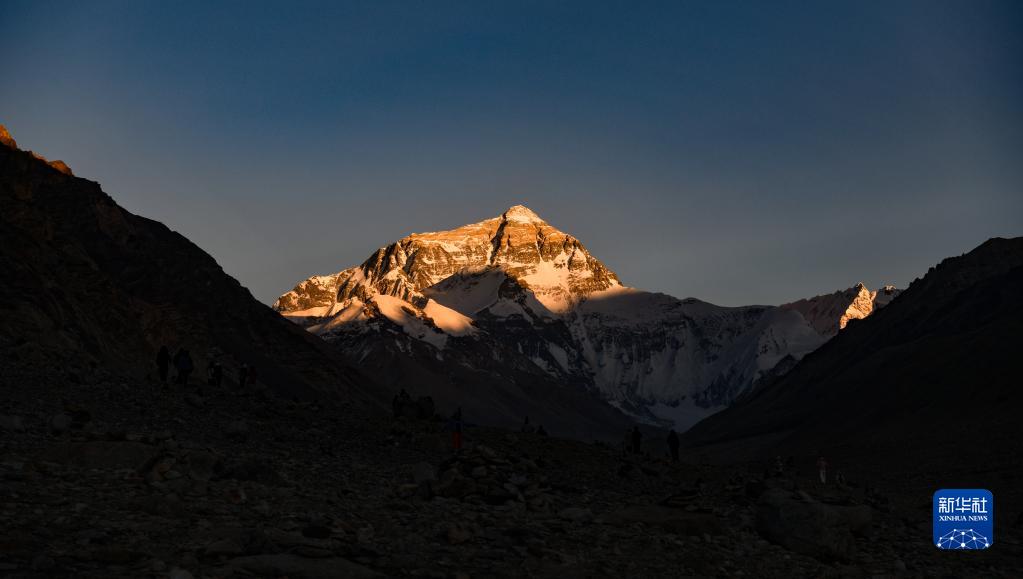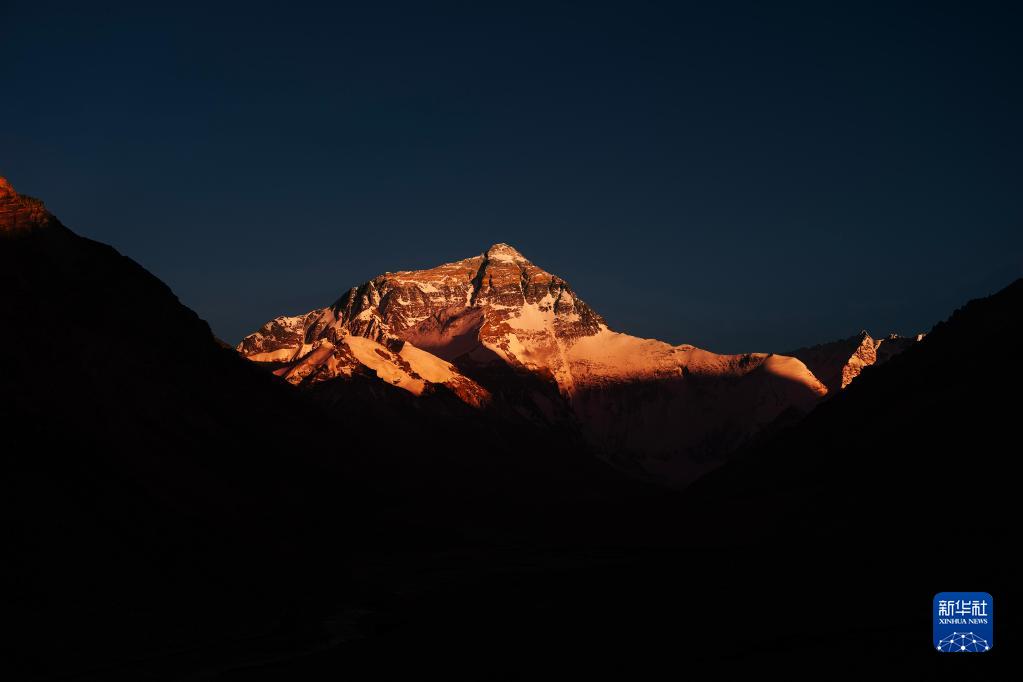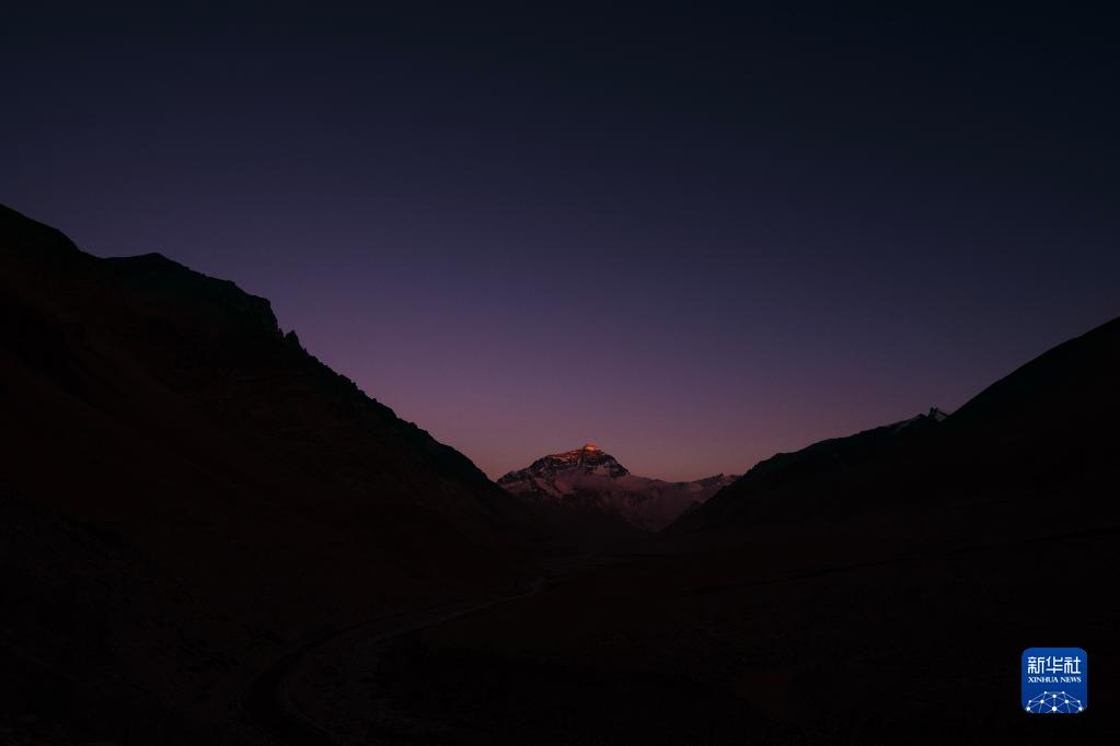 6月4日,最後一抹陽光即將從(cong) 珠峰頂上消逝。新華社記者 費茂華 攝