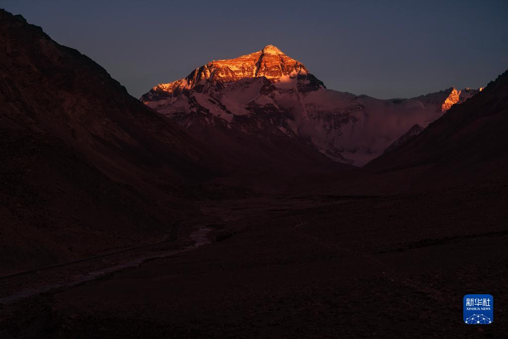 6月4日拍攝的太陽完全落山之後的珠峰。新華社記者 費茂華 攝
