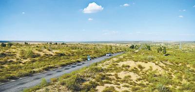 登上杭錦旗第一條穿沙公路旁的防火瞭望塔,四下遠望,隻見公路兩(liang) 側(ce) 的沙地,被沙生植物覆蓋起來。這條全長115公裏的黑色柏油路,從(cong) 杭錦旗錫尼鎮出發,猶如一把利劍,直插庫布其沙漠腹地,硬生生將沙漠攔腰劈斷。