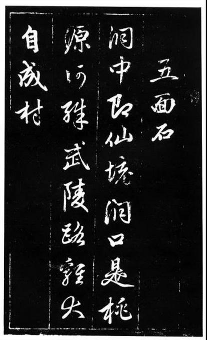 其行書(shu) 冊(ce) 頁《天冠山題詠詩帖》。天冠山在江西省貴溪市,有三座山峰品峙而立,故稱三峰山。又因其巔方正,兩(liang) 隅垂桃如冕,又稱天冠山。趙孟頫曾在此立碑,並撰文書(shu) 丹,為(wei) 天冠山二十四景撰寫(xie) 詩帖,遍寫(xie) 貴溪風光。此帖為(wei) 清人錢泳刻本,書(shu) 法以婉媚勝,世所喜好。
