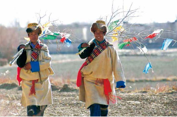藏曆新年的時間與(yu) 內(nei) 地的農(nong) 曆春節相差不遠,有時竟是同一天。這是西藏各地區都要過的大節日,也是西藏最熱鬧、最隆重的節日。春回大地,除舊迎新,人們(men) 對新年新歲寄予太大的希望和太多的祝福,希望新的一年帶來吉祥、帶來幸福、帶來好運、帶來健康、帶來豐(feng) 收,所有的儀(yi) 軌習(xi) 俗,都是為(wei) 了這樣一個(ge) 目的。大年初一這一天,人們(men) 一見麵,都用下麵的語言互相祝福: