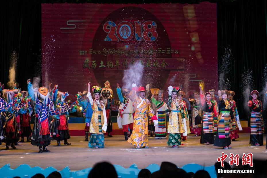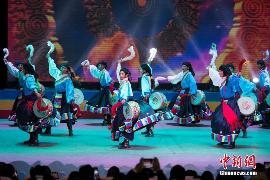2月10日,隨著2018年春節和藏曆新年的日益臨(lin) 近,西藏拉薩的節日氣氛越來越濃。當晚一場傳(chuan) 統歌舞晚會(hui) ,提前為(wei) 拉薩民眾(zhong) 送去新春的祝福。晚會(hui) 以傳(chuan) 統藏戲、歌舞、小品等表演形式,把藏民族古老的藏戲、卓舞、鍋莊等非物質文化遺產(chan) 搬到了新年舞台。圖為(wei) 中國國家級非物質文化遺產(chan) 《卓舞》表演。中新社記者 何蓬磊 攝