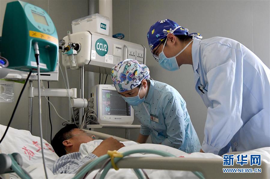 劉光耀(右一)和喬(qiao) 冰(右二)在河南省直第三人民醫院急重症醫學中心病房內(nei) 詢問病人情況(4月26日攝)。劉光耀和喬(qiao) 冰是河南省直第三人民醫院急重症醫學中心的護士,也是一對“90後”情侶(lv) 。新冠肺炎疫情發生後,他們(men) 一起報名申請到武漢一線支援。新華社記者李安攝