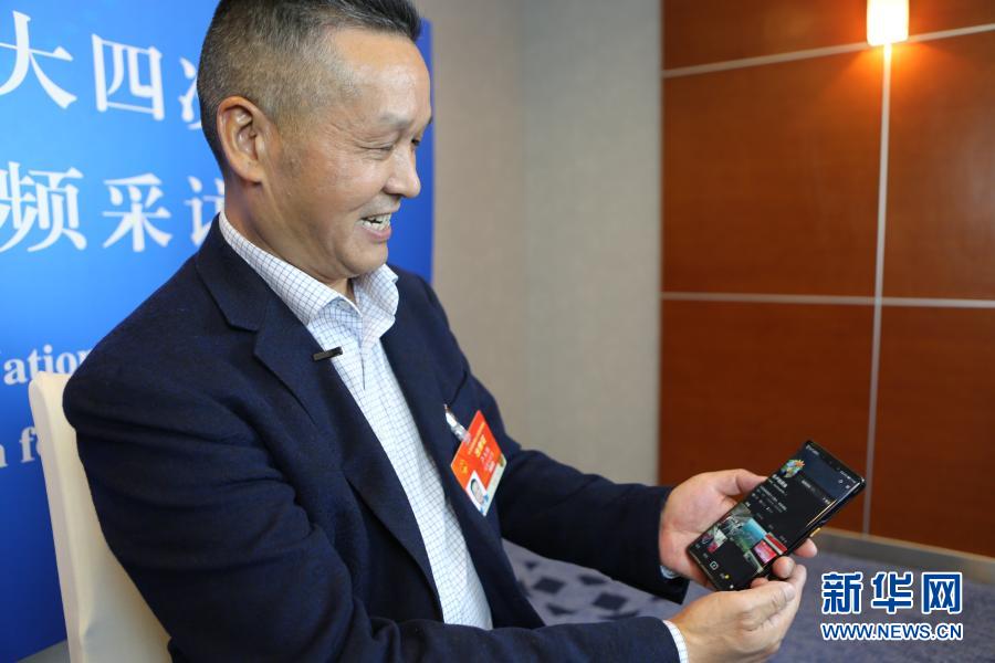 3月3日,全國人大代表、福建永泰縣希安油茶專(zhuan) 業(ye) 合作社負責人盧玉勝在駐地接受采訪時展示他為(wei) 宣傳(chuan) 油茶開通的社交媒體(ti) 賬號。新華社記者 吳雨 攝