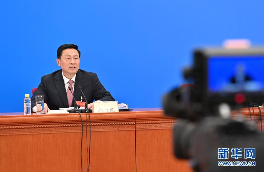 這是郭衛民在主會(hui) 場回答記者提問。新華社記者 李鑫 攝