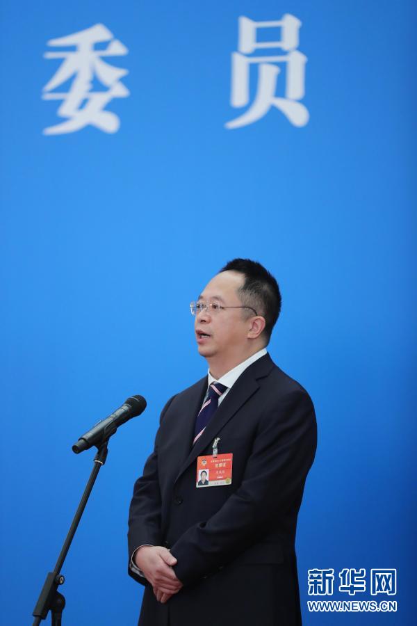 3月4日,全國政協十三屆四次會(hui) 議第一場“委員通道”采訪活動在北京人民大會(hui) 堂新聞發布廳舉(ju) 行。這是全國政協委員朱征夫通過網絡視頻方式接受媒體(ti) 采訪。新華社記者 李賀 攝