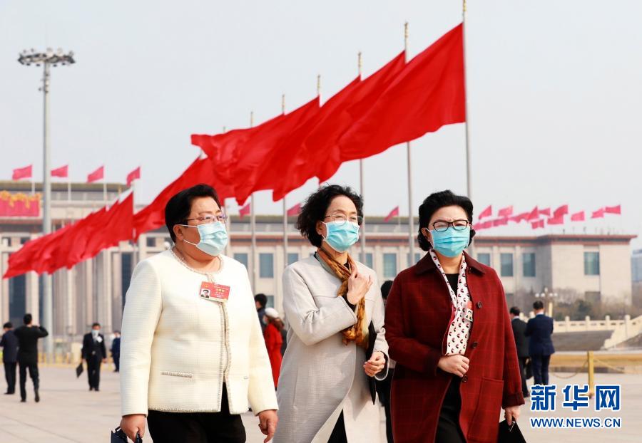 3月8日,十三屆全國人大四次會(hui) 議在北京人民大會(hui) 堂舉(ju) 行第二次全體(ti) 會(hui) 議。這是女代表們(men) 走向會(hui) 場。新華社記者 賀長山 攝
